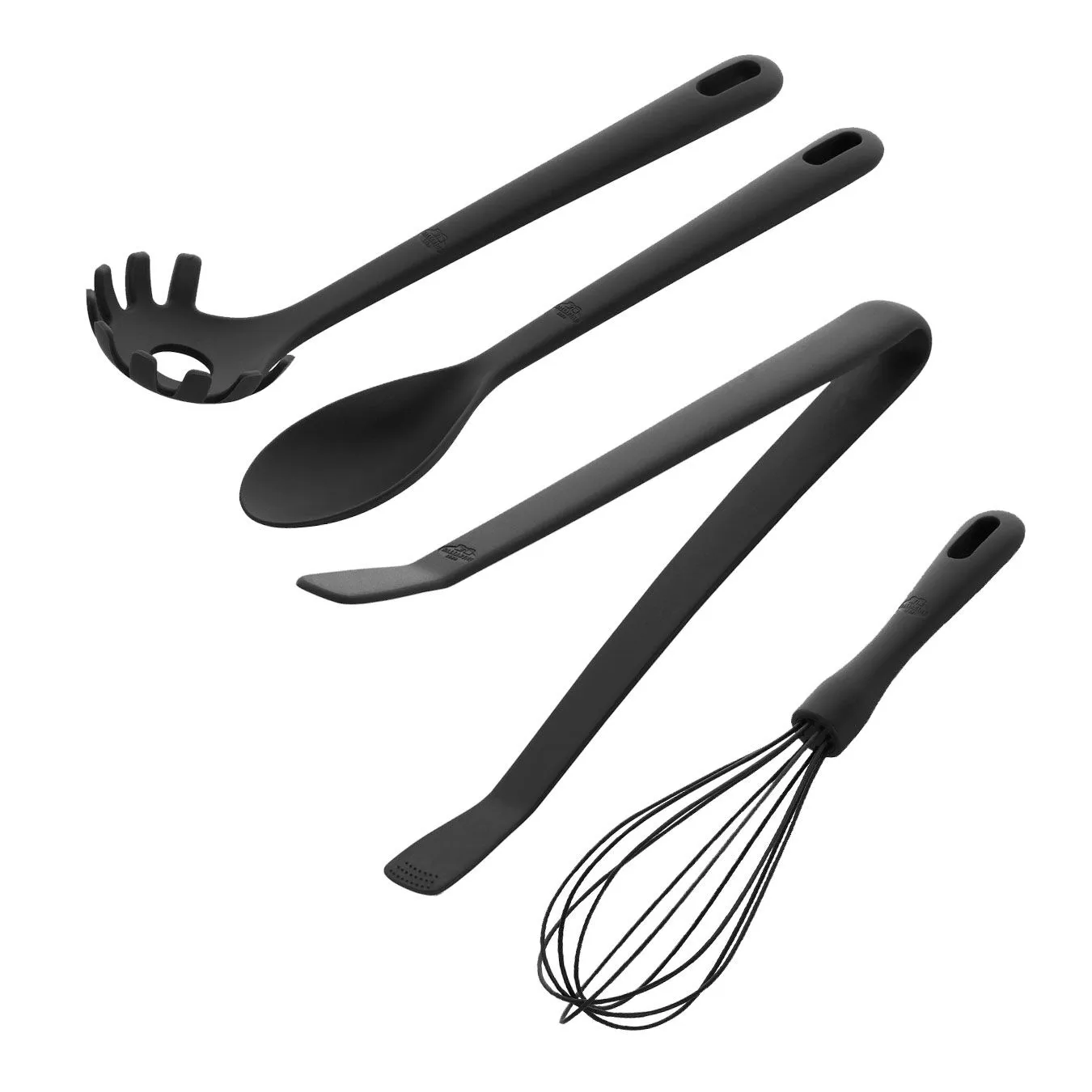 Dine køkkenredskaber er i stykker eller slidt op, og du har hårdt brug for nye? Så er Nero sættet lige noget for dig. En madlavningsske, en ske til pasta, et piskeris og en tang, og så er dit køkken igen komoplet. Dette sæt består af produkter fra BALLARINI Nero-serien, som er designet af Matteo Thun & Antonio Rodriguez. Den imponerer med sit tidløse og æstetiske sorte design, som skal afspejle vores og din passion for madlavning.