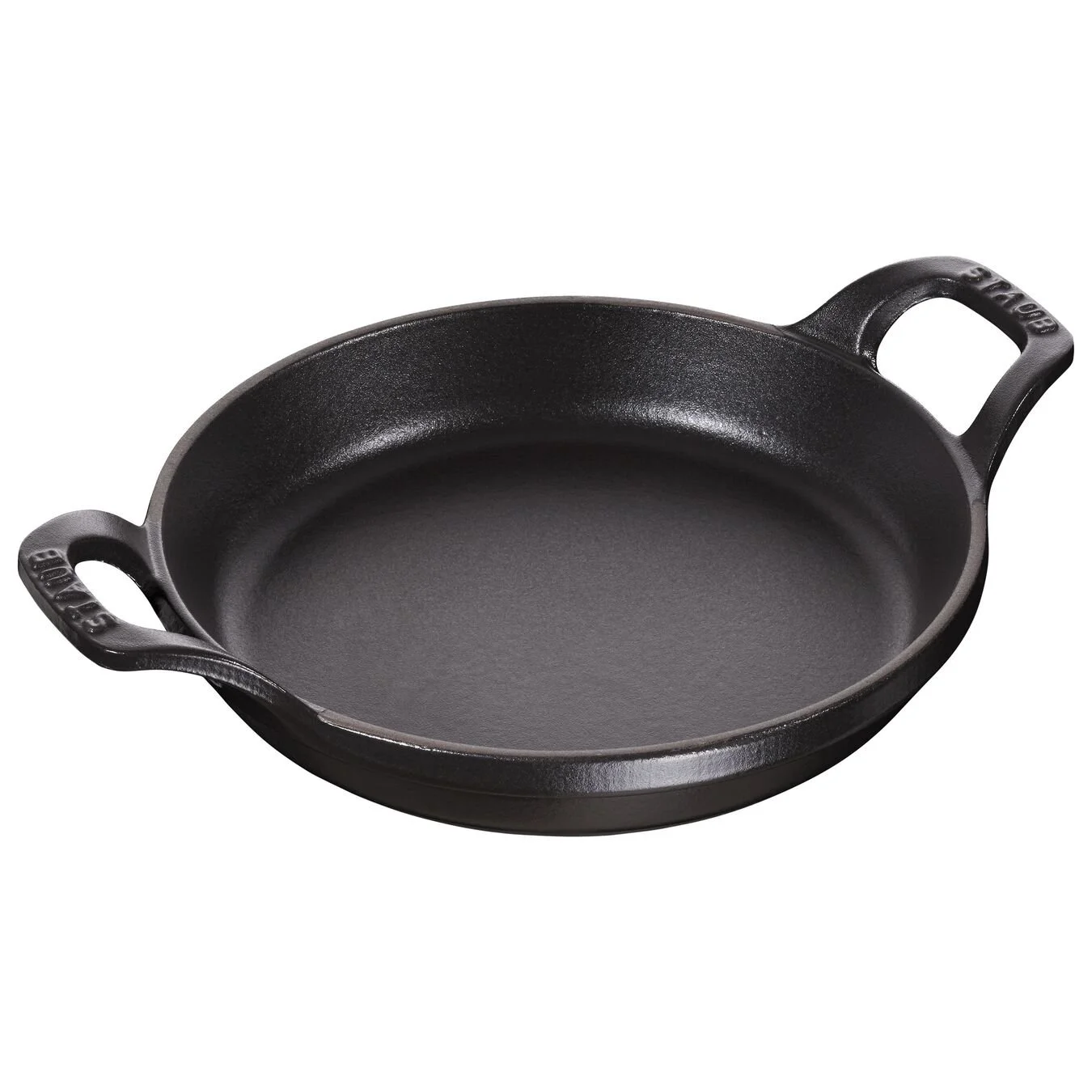 Det runde støbejernsfad måler 26 x 20 cm og har en volumen på 0,75 liter og kan nemt stables sammen med andre størrelser fade. Håndtagene på hver side af fadet gør det desuden lettere at holde og manøvrere rundt i køkkenet. Servér delikate ovnbagte retter eller kød med en smuk stegeskorpe lavet i dette attraktive og praktiske støbejernsfad fra Staub.