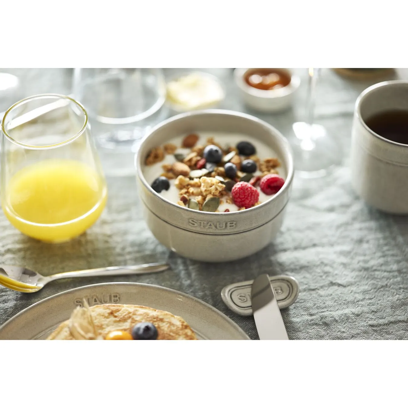 Skålen er en del af den nye White Truffle serie fra Staub. White Truffle er Staubs første komplette serie og består af cocotter, tallerkener, skåle, krus og bestikholder. Farven er inspireret af den italienske hvide trøffel, en af de mest sjældne og eksklusive råvarer i verden.