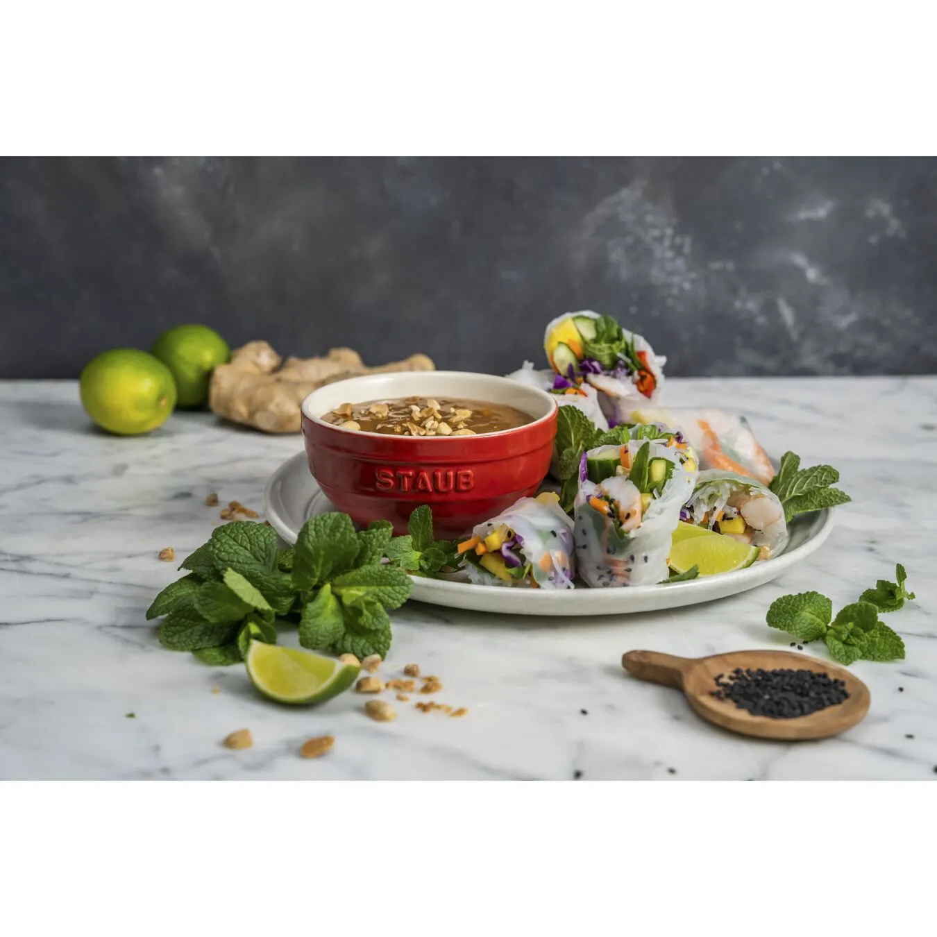 Disse emaljerede skåle er fremstillet af keramik af høj kvalitet og håndlavet for at opnå perfektion, og de er smukke og funktionelle på samme tid. De kan bruges i mikrobølgeovnen, rengøres i opvaskemaskinen og stables for praktisk opbevaring. Brug skålen til at blande dips og saucer, til at holde ingredienser, mens du tilbereder udførlige opskrifter, eller til at servere små portioner med stil. Deres tidløse og elegante design bringer en smule fransk livsglæde til dit bord og gør hvert måltid til et særligt måltid.