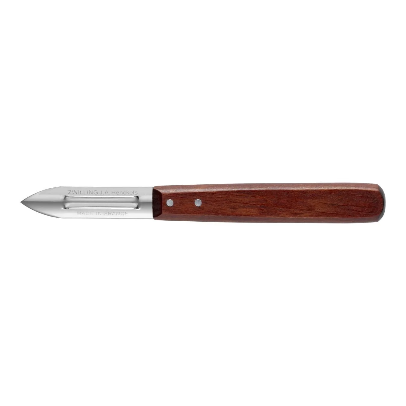 Kartoffelskrælleren måler 5,5 cm og har et elegant træskaft.Takket være det skridsikre skaft er skrælleren behagelig at holde om, og det rustfri stål sikrer god holdbarhed. Skræl frugt og grøntsager uden overflødigt spild med denne kartoffelskræller, som med sikkerhed vil forenkle enhver koks køkkenarbejde.