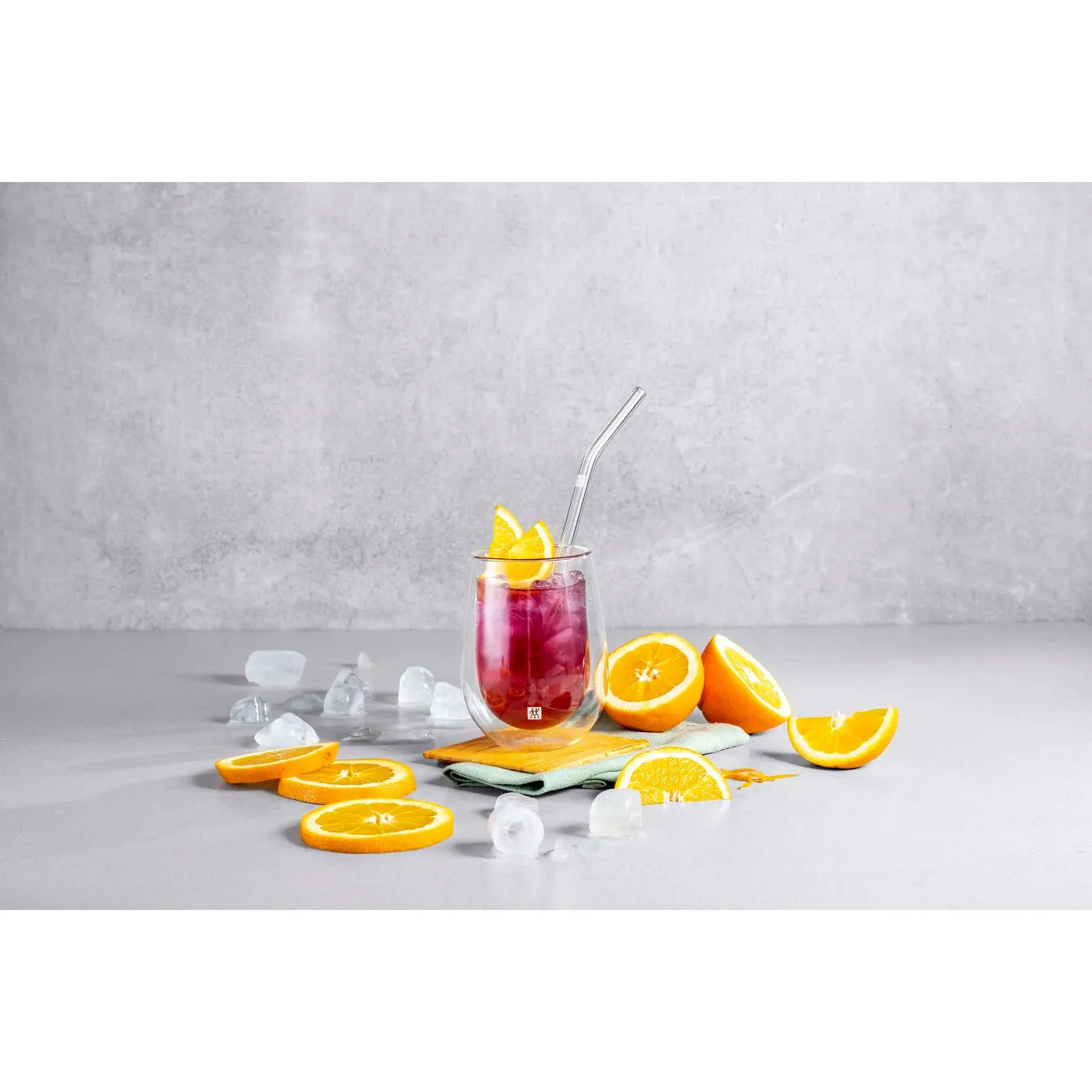 Alle gode longdrinks har én ting til fælles: De smager bedst med is. Og derfor findes der et glas, hvor isterninger smelter langsommere: ZWILLING Sorrento Bar long drink glasset. Det dobbeltvæggede borosilikatglas isolerer særligt godt, så drikken ikke tager imod varmen fra hånden eller påvirkes af rumtemperaturen. Det betyder, at drikken holder sig behageligt kold i længere tid og ikke bliver udvandet, selv ved grillfester om sommeren.