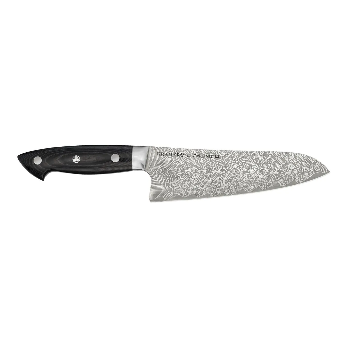 Du kan ikke undgå at bemærke mønsteret på det ishærdede CRYODUR® blad, som skabes igennem adskillige lag af rustfrit stål. Bladkernen er lavet af pulverstål SG2, indkapslet i yderligere 100 lag af stål. En kompleks maskinbehandling frembringer det bølgeformede mønster og en speciel hærdningsproces giver bladet en hårdhed på 63 Rockwell. Santokuknivens skarpe skær vil glide let og ubesværet igennem alle råvarer.